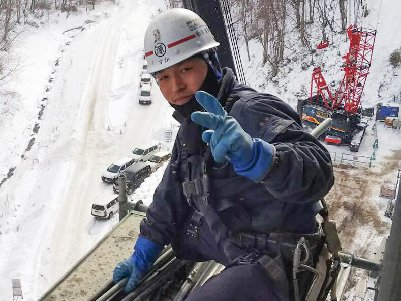 建設業界は人手不足と言われていますが、源架設はベテランスタッフが多く、いつでも気軽に相談できる環境が整っています。未経験で入社した私も、周りの先輩たちに支えられながら成長できました。やる気があれば、3~4年で現場責任者を任されるほどに成長できるのも、源架設の魅力です。資格取得についても会社が費用を全額サポートしてくれるので、安心して挑戦できます。実際、私たちスタッフはそれぞれ20近くの資格を持っています。資格を取得してスキルアップしたい方、技術を磨きながら長く働きたい方、ぜひ一緒に働きましょう!皆さんの挑戦を楽しみにしています。